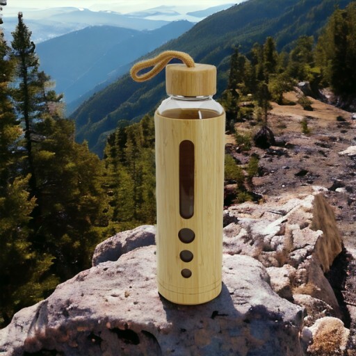 ✅Пляшка виготовлена зі скла, з бамбуковим захистом, що робить її більш стійкою до пошкоджень.