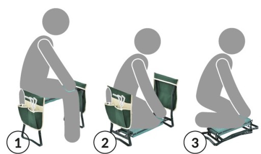 Функціональний коліно стане в нагоді при виконанні наземних робіт, таких як прополка або пересадка рослин. Повертаючи коліно, його можна легко трансформувати в табурет, який полегшить збір фруктів або навіть замінить рибальський стілець.