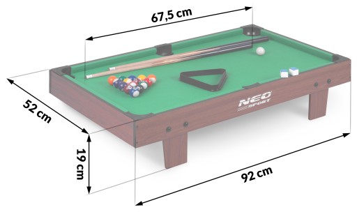 У набір також входять всі необхідні аксесуари: 2 киї, 16 куль, трикутник і 2 більярдні крейди.