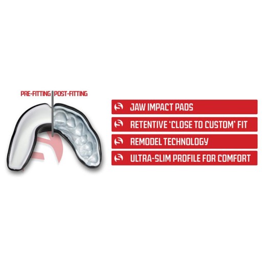 - Виріб має амортизацію, що забезпечує додатковий захист щелепи. Така конструкція протектора ефективно знижує силу удару під час поєдинків і спарингів, забезпечуючи безпечні тренування.
