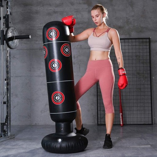 🥊 Ідеальний подарунок для дітей і підлітків: цей дитячий боксерський мішок утримає ваших дітей від екрану та буде фізично активним. Це найкращий спосіб для гіперактивних дітей спалити накопичену енергію від надто тривалого сидіння. Вони можуть бити руками і ногами скільки завгодно і нікому не завдати шкоди. Його висота 155 см у повністю накачаному стані, його легко використовувати вдома, в офісі, у тренажерному залі тощо. Нашою грою може насолоджуватися майже кожен.