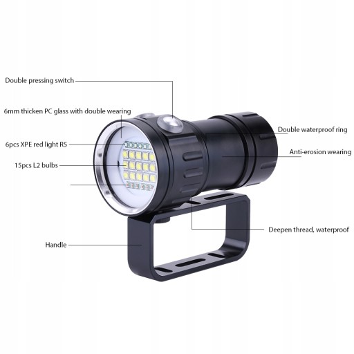 Цей дотик використовує алюмінієвий сплав, зносостійкий, міцний і довговічний. IPX8 водонепроникний і зручний дизайн, портативний і легкий для перенесення під водою. Двічі натисніть перемикач, щоб налаштувати яскравість і режим освітлення. Ідеальне освітлення для активного відпочинку та підводного відпочинку.