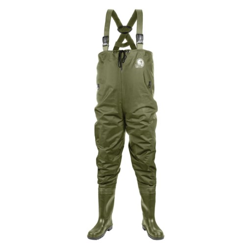 Вейдерси з ПВХ і нейлону. Зовнішня сторона верхньої частини виконана з нейлону щільного переплетення 210D і покрита зсередини шаром ПВХ, що робить вейдерси повністю водонепроникними.