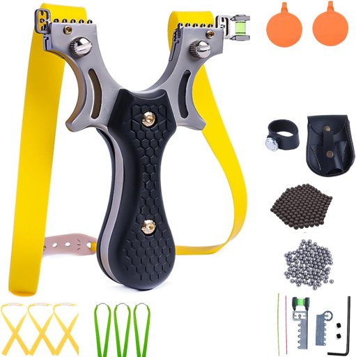 👍Тактична рогатка: рогатка постачається з міцними змінними ременями різної товщини, а приціл із нержавіючої сталі допомагає ентузіастам і початківцям тренуватися й точно прицілюватися, а також стріляти в різноманітних сценаріях.