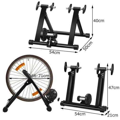 Не можете тренуватися через обмежений простір? Ця стоянка для велосипеда саме для вас. Пірамідальна конструкція з міцної сталі гарантує стабільність. Нейлон захищає підлогу і підвищує стійкість, тому підставка не хитається. Підходить для шин розміром 66, 68 і 71 см. Складаний дизайн легко зберігати і займає мало місця. Легкий і компактний, його можна легко носити куди завгодно.