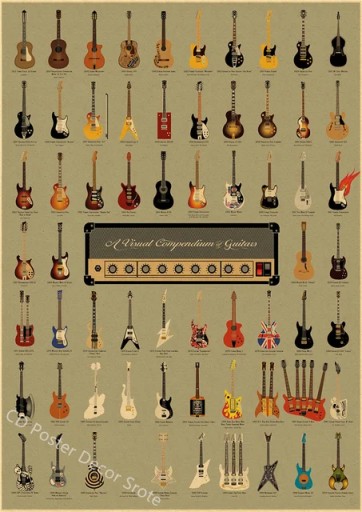 Колекція гітарних плакатів. Плакати з крафт-паперу. Вінтажна домашня кімната своїми руками