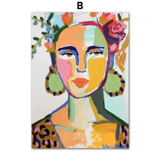 Тропічна кольорова дівчина. Автомобіль. Квітка. Коала. Леопард. Настінне зображення