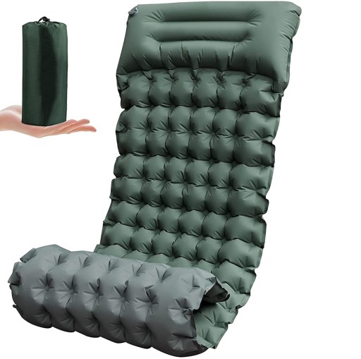 - Наш кемпінговий спальний килимок не потребує накачування рукою, ротом або насосом. Використовуйте ногою, щоб наступити на вбудований надувний пристрій, щоб повністю надути спальник лише за 30 секунд. Функція герметичності