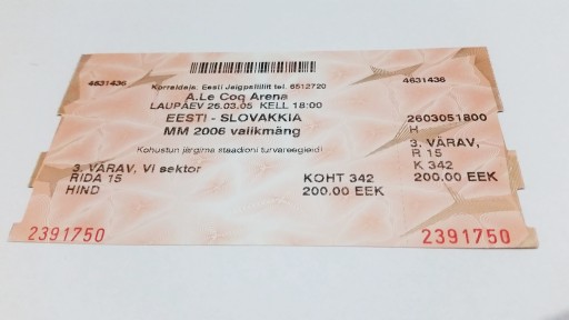 Колекційний квиток Естонія - Словаччина 2005р