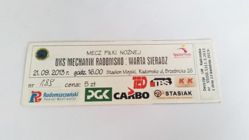 Квиток RKS RADOMSKO - WARTA Sieradz 2013