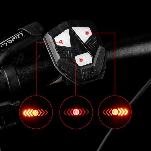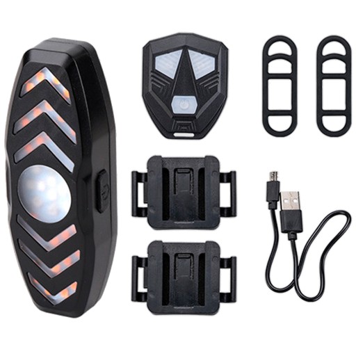 - Задній велосипедний ліхтар із покажчиками повороту, керованими без проводів за допомогою пульта дистанційного керування