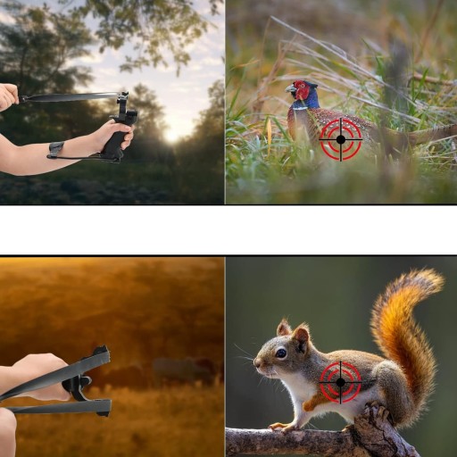 🏹【Потужна стрільба】: наші мисливські рогатки оснащені міцною та потовщеною гумкою, яка забезпечує потужні постріли. Завдяки підставці для зап’ястя та інфрачервоній системі прицілювання він забезпечує точну та послідовну стрільбу.