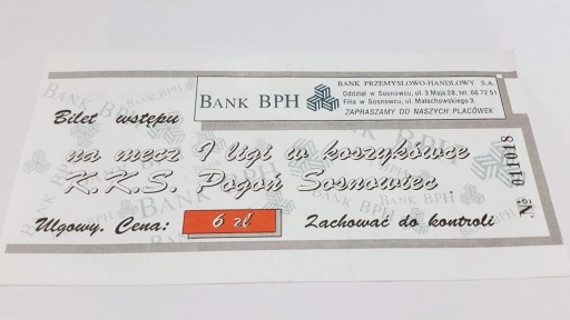 Старий баскетбольний квиток POGOŃ Sosnowiec
