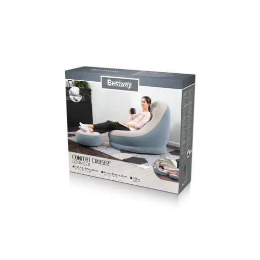 Надувне крісло легко встановити, займає мінімум місця для зберігання та є надзвичайно зручним. Завдяки міцній конструкції та просторій поверхні це крісло ідеально підходить, коли гості приходять, щоб заповнити вільну кімнату, подивитися гру або як меблі для кімнати гуртожитку. Конструкція крісла забезпечить максимальний комфорт незалежно від того, лежите ви, витягнувшись або сидите прямо. Крім того, він ідеально підходить для внутрішнього та зовнішнього використання. У комплект входить не менш зручна підніжка, яка забезпечить додатковий комфорт.