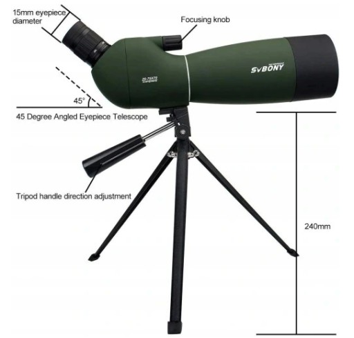 - Svbony 25-75x70mm Zoom Spotchanie Scope with table tripod