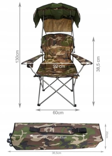 Завдяки навісу, прикріпленому до крісла, ви можете рибалити або відпочивати, не турбуючись про шкідливий вплив сонячного випромінювання. Після використання ви можете загорнути крісло в балдахін, який також служить чохлом.
