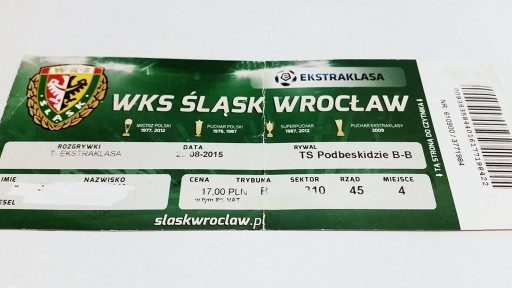 Квиток ŚLĄSK Wrocław - PODBESKIDZIE B-B 22/08/2015