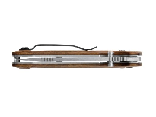 Зручна рукоятка з анатомічно профільованим покриттям з класичного дерева забезпечить комфорт при тривалій роботі ножа, а відповідне профілювання покращить хват. Конструкція забезпечує легкість утримання ножа в чистоті.