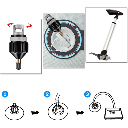 ☑️Простий у використанні: наш клапанний адаптер легко надувати та спускати. Він дуже простий у використанні. Цей надувний адаптер клапана SUP легко реконструювати, а ефективність накачування досить висока.