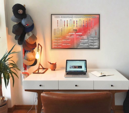 Розклад Чемпіонату Європи з футболу 2024 року з місцем додавання результатів. Плакат надрукований у відмінній якості на цупкому та міцному атласному папері щільністю 220г/м2.