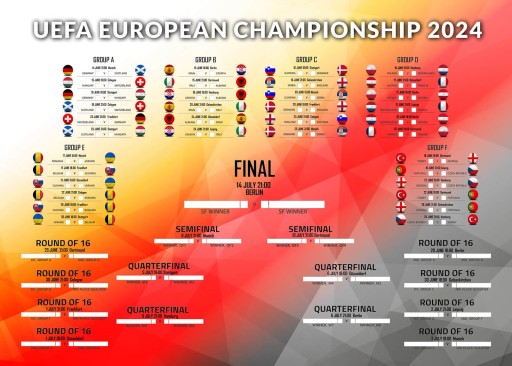 Таблиця Чемпіонату Європи з футболу 2024 - плакат англійською мовою