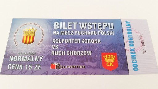 Квиток KORONA Кельце - RUCH Chorzów 08.02.2003
