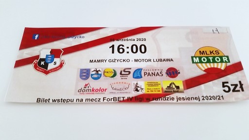 Квиток МАМРИ Гіжицько - МОТОР Любава 09.05.2020