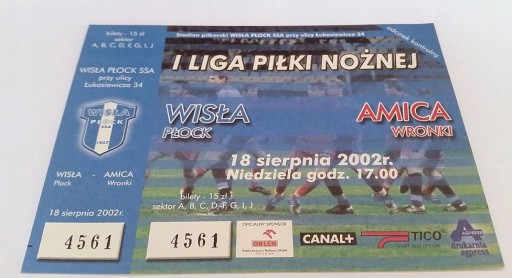 Квиток WISŁA Płock - AMICA Wronki 18/08/2002