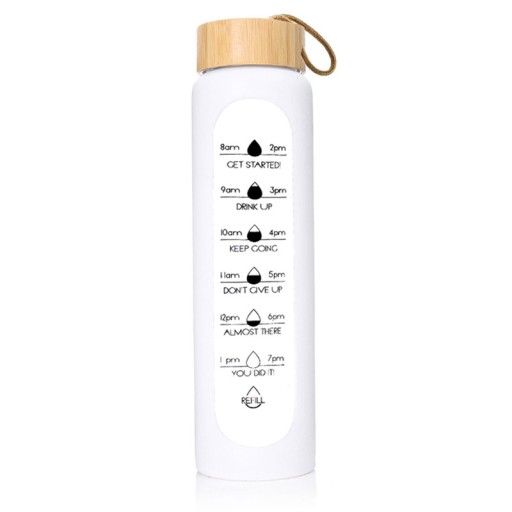 Безпечний матеріал, велика ємність і мотиваційна мірна чашка - безсумнівні переваги цієї модної пляшки. Завдяки прикріпленому шнурку його легко переносити. ✅ Характеристика: матеріал: скло
