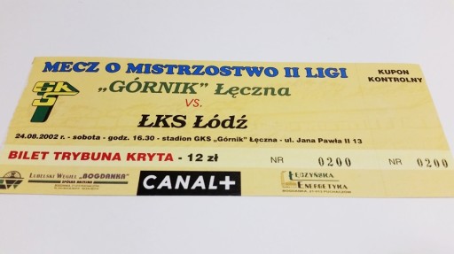 GÓRNIK Łęczna - ŁKS ŁÓDŹ квиток 24/08/2002