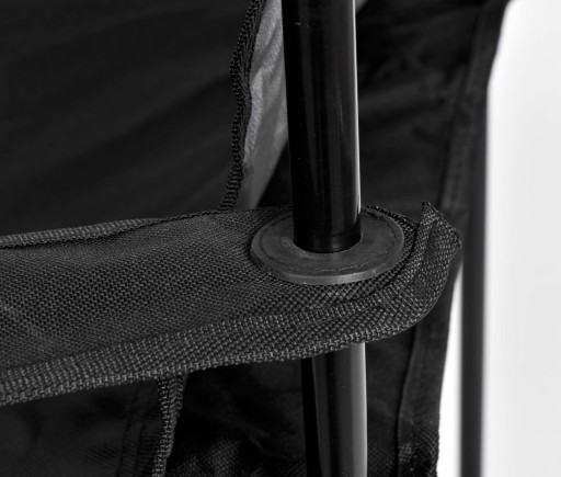 Зручна кишеня для чашки, консервної банки та інших дрібниць забезпечує легкий доступ до них, сидячи. Подвійні шви і міцні металеві труби забезпечують довговічність і безпеку під час використання.