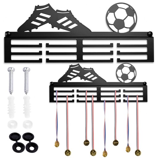 Вішалка для медалі BALL Матеріал: метал | Кольори: чорний Вішалка для медалей - це стильний і практичний елемент декору, який обов'язково повинен бути в списку кожного, хто тренується. Вирізайте за допомогою точної лазерної технології. Вся річ покрита лаком з обох сторін, що робить вішалку стійкою до подряпин. Рекомендуємо також як подарунок дітям і підліткам - давайте покажемо їм, як ми пишаємося їхніми успіхами! Вони точно охочіше відкладуть телефон, побачивши більше користі в спорті. Характеристики виробу Виготовлений з високоякісного металу Напис вирізаний лазерною технологією Двостороннє покриття якісним лаком для захисту від подряпин У комплект входять: розпірні шпильки та ковпачки в колір вішалки Розміри виробу Ширина: 40 см Висота: 16 см Додаткова інформація Наведені кольори наведені лише для ілюстрації - вони можуть відрізнятися від реальних через різні налаштування монітора та процеси обробки фотографій. Фактичні розміри можуть відрізнятися від наведених вище. Допустима похибка може бути +/- 5%. Виробник: Gockowiak Код EAN: 5902340327999 Колір: чорний Висота: 16 см Ширина: 40 см Збірка: кілочки [в комплекті] Матеріал: метал