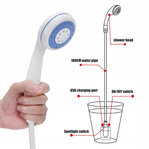 5. Вбудований водонепроникний перемикач, достатній для підтримки короткочасного замочування та водонепроникності при щоденному використанні. Світлодіодні підсвічування полегшують прийняття душу вночі.