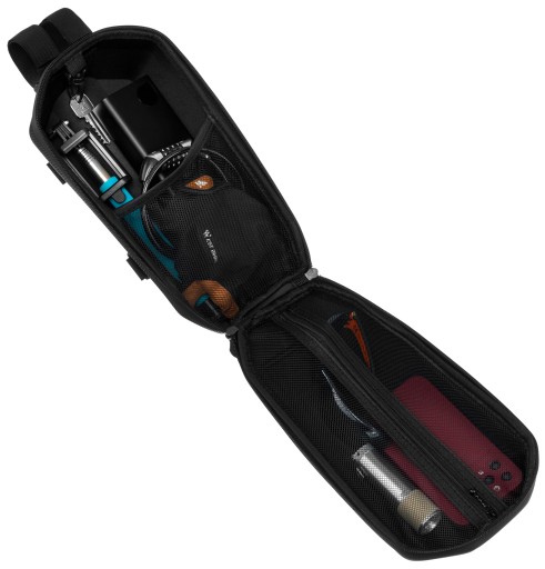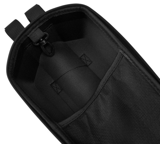 Всередині відділення на блискавці є 2 сітчасті кишені. Один повністю застібається на блискавку, інший відкритий. Сумка також оснащена карабіном, до якого можна прикріпити ключі.