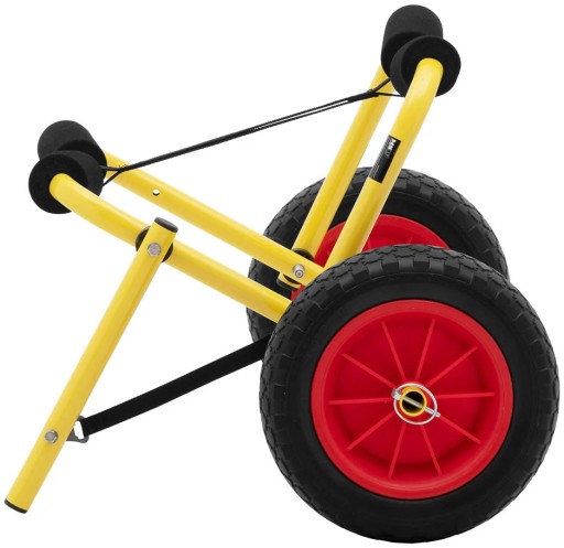 Візок для каяків MSW ідеально підходить для транспортування вашого байдарки з автомобіля на воду. Завдяки великим поліуретановим (ПУ) колесам розміром 10 дюймів візок ідеально підходить для використання на різних поверхнях, а ремінь довжиною 3,6 м з двома швидкоз’ємними з’єднувачами закріпить вантаж, що транспортується. Виготовлений з міцних матеріалів, завдяки своїй стійкій конструкції він може витримати загальну вагу до 75 кг. Коляска складається з легкої алюмінієвої рами. Коляску можна скласти і зняти колеса, тому вона легко поміщається в машині, економлячи місце.