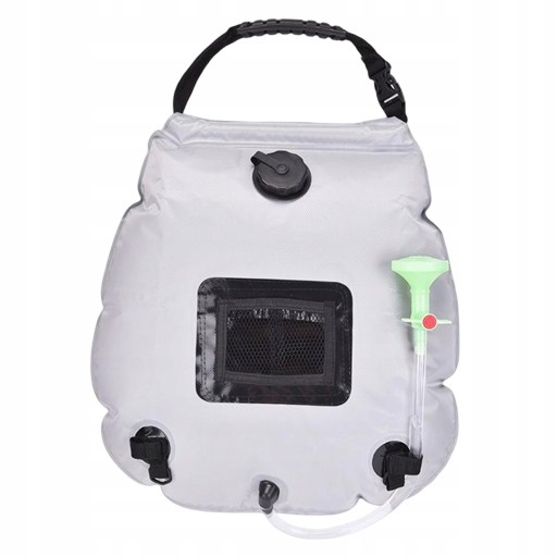 Конструкція: Портативний кемпінг із міцним гачком із ручкою, ви можете повісити його або гілку дерева. Він може регулювати кількість води більш зручно та швидко. Є сітчаста кишеня для зберігання туалетного приладдя та інших предметів.