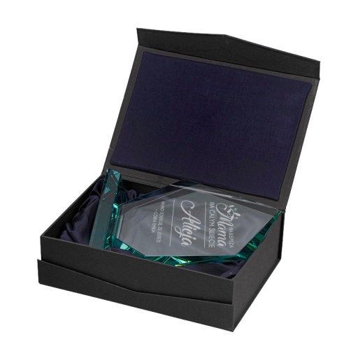 ✨ Статуетка вражає своїми розмірами та елегантною, сучасною формою. Гравірування тонко виділяється на кришталевій поверхні статуетки, створюючи прекрасний візуальний ефект.
