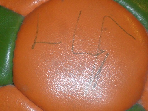 Оригінальний м'яч, підписи фломастерами, трохи вицвілі, але все одно добре читаються. М'яч у наших руках 44 роки. Наскільки я знаю, таких куль було дуже мало і наш, мабуть, один із небагатьох, що вціліли.