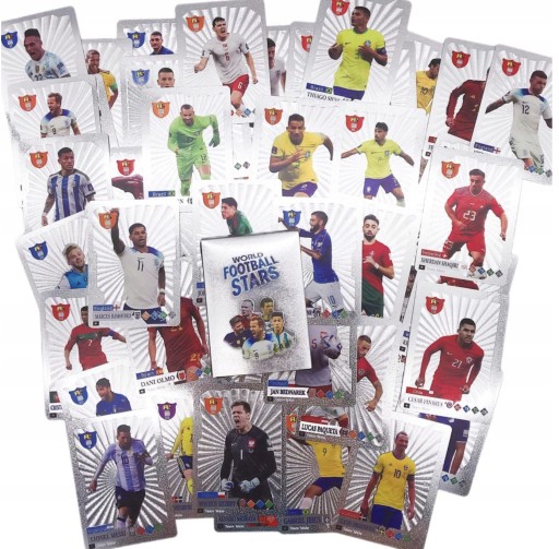 Набір футбольних карток містить картки із зображенням найбільших футбольних зірок.