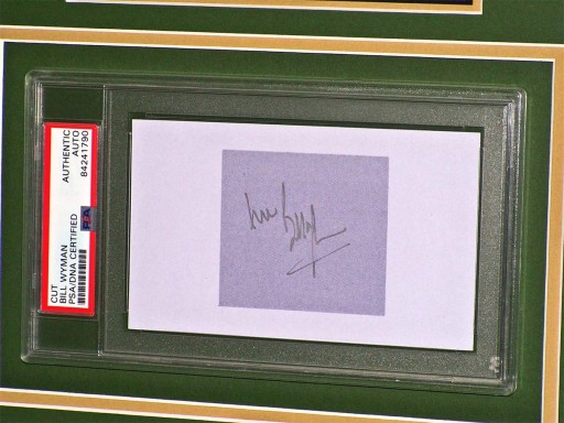 Автограф закріплений у спеціальній рамці з сертифікатом PSA/DNA