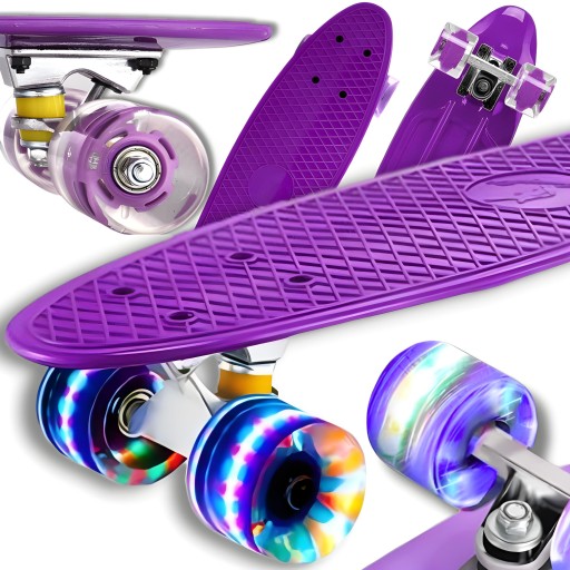 Скейтборд оснащений гумовими світлодіодними колесами, які барвисто світяться під час катання
