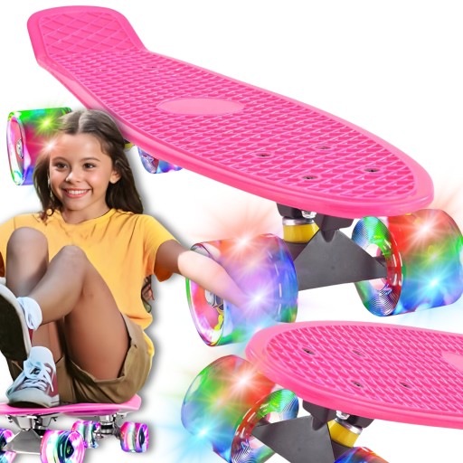 Скейтборд оснащений гумовими світлодіодними колесами, які барвисто світяться під час катання