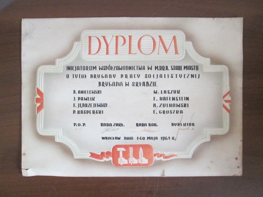 ДИПЛОМ ЗА ЗВАННЯ БРИГАДИ СОЦІАЛІСТИЧНОЇ ПРАЦІ 1961р.