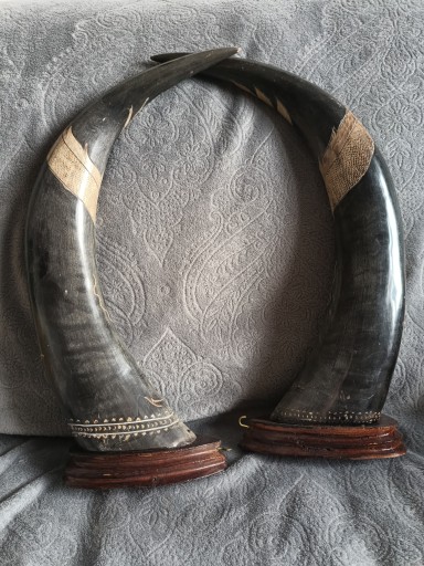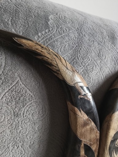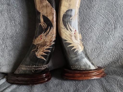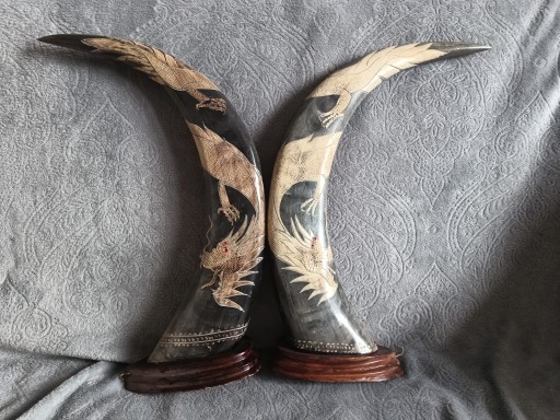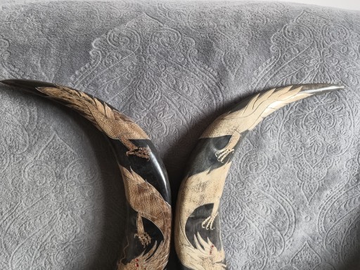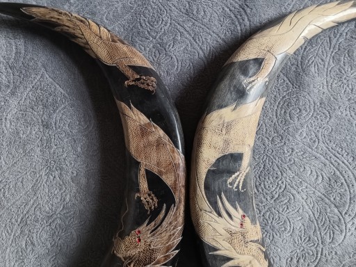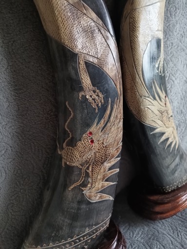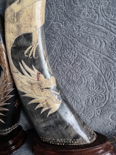 Роги буйвола, прикрашені візерунком птаха та дракона - Китай - Друга половина 20 століття