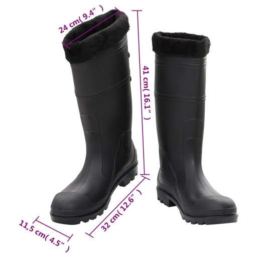ЧОБОТИНКИ ЗІ ЗНІМНИМ УТЕПЛЮВАЧОМ, ЧОРНІ, РОЗМІР 46 ПВХ