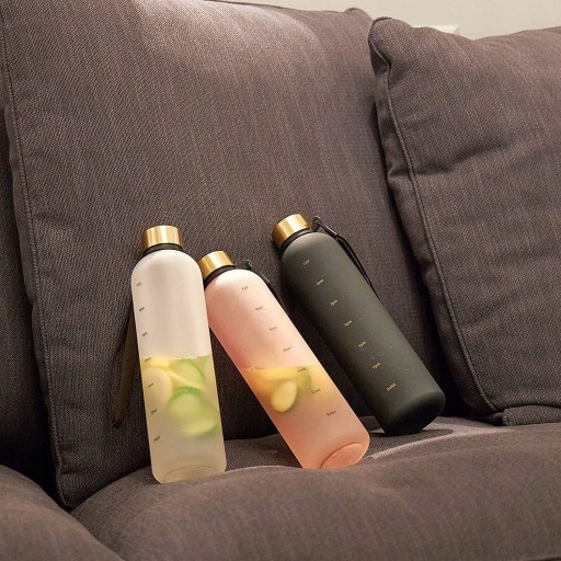 Пийте достатньо - це ніколи не було простіше! З новою 1-літровою пляшкою для пиття ви завжди зможете мати при собі достатню кількість води чи інших напоїв. Зручний маркер часу на задній панелі також служить нагадуванням про необхідність випити - швидкий погляд на годинник скаже вам, чи випили ви достатньо. ПРЕМІАЛЬНА ЯКІСТЬ - Наші пляшки для питної води виготовлені з термопластичного сополіефіру тритану найвищої якості, який не має запаху, не руйнується та на 100% безпечний для харчових продуктів. Легкий і водночас ударостійкий. НАДЗВИЧАЙНО ЛЕГКИЙ ТА МІЦНИЙ - Завдяки ергономічному плечовому ремінцю пляшка надійно тримається в руці, додаючи яскравого кольору для ідеальної посадки в спортзалі та в дорозі - Пляшка не протікає і підходить для газованих напоїв. Прозоре матове покриття з нагадуванням про напій завжди повідомить вам, коли настав час долити. ECO- Маленька банка міцна і може використовуватися тривалий час, що дозволяє вести здоровий і екологічно чистий спосіб життя. Не використовуючи одноразовий пластик, ви щодня сприяєте збереженню навколишнього середовища.