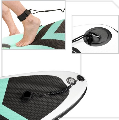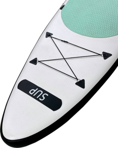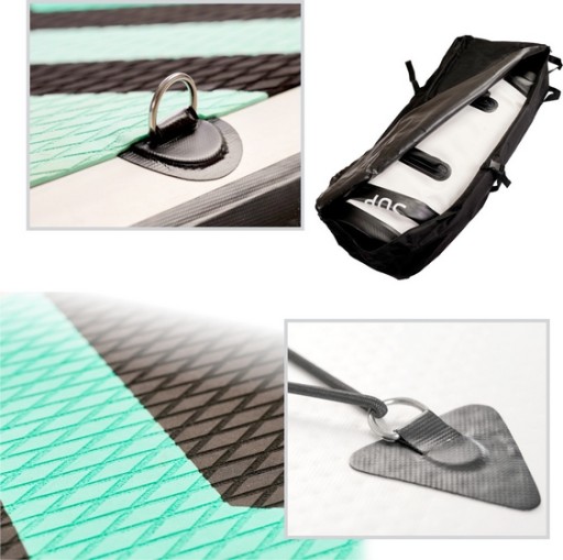 На передній частині дошки є мотузки, які служать стійкою під час водних подорожей. . Транспортування ненадувної дошки полегшує практичний чохол у вигляді рюкзака.