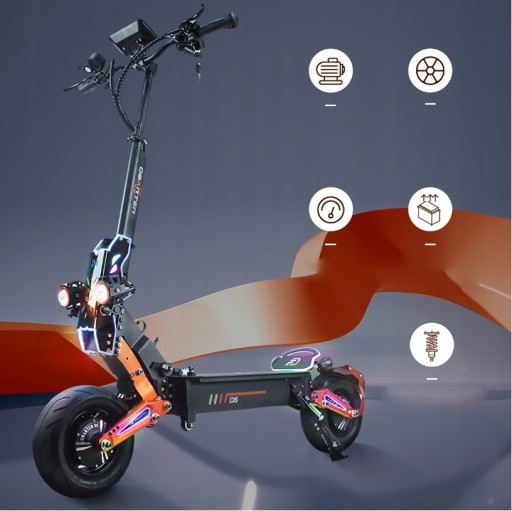 - Подвійний двигун потужністю 5000 Вт для швидкості 60-70 км/год