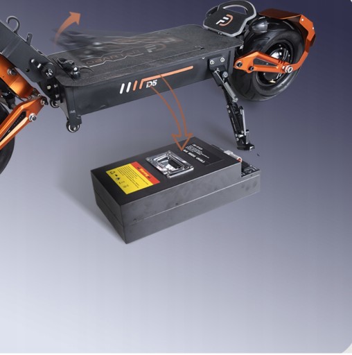 Батарея 1680Wh, запас ходу 60-120км, можна використовувати протягом 5-7 годин, знімну батарею можна вийняти окремо для зарядки (повний заряд близько 54.6V).