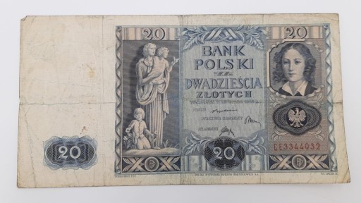 Стара колекційна банкнота Польща 20 злотих 1936 р